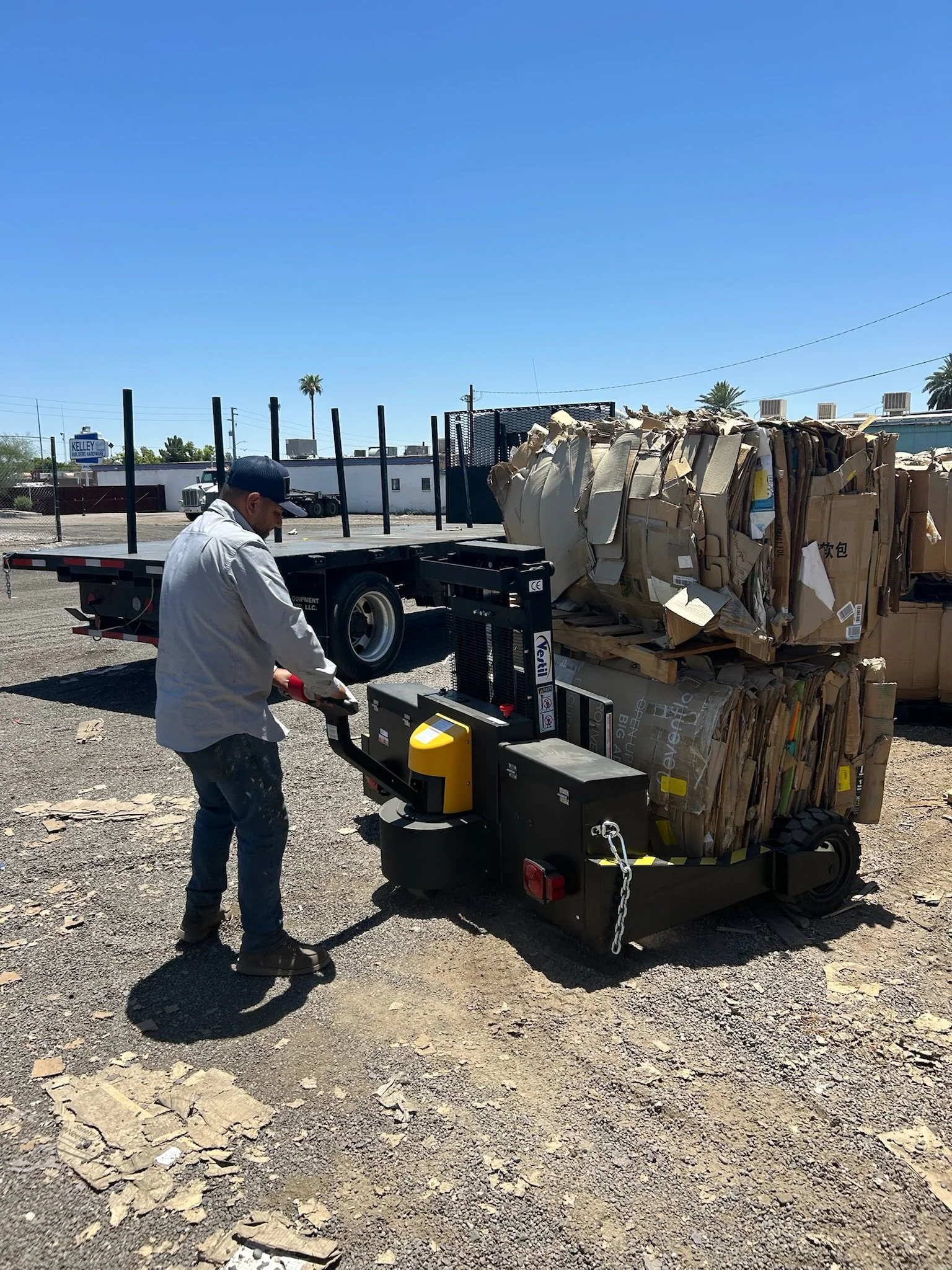 Your team loads recyclable material into the baler as you work. No loose bins. No overflowing dumpsters.